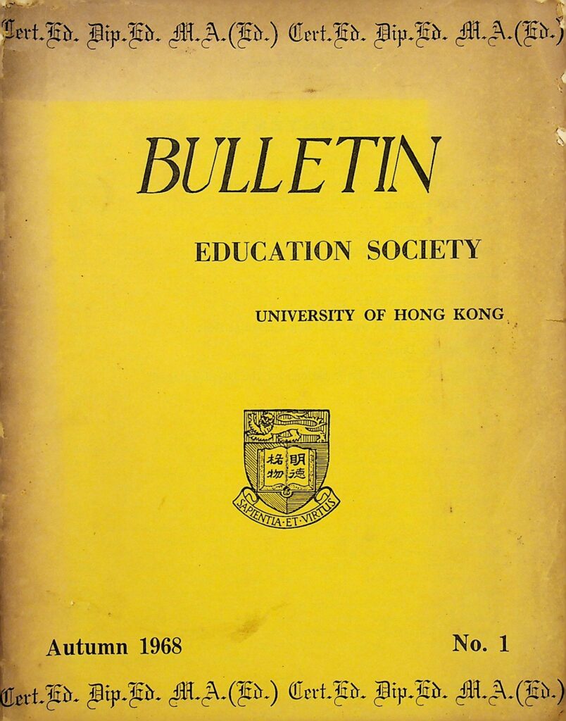 香港大学教育学会于1968年秋季出版的《教育学会公报》创刊号的摘录,其中包含了学会主席和秘书的报告、系科新闻以及在读研究生及其研究课题的摘要。公报中的文章探讨了香港的教育实践,例如一篇由雷·辛普森博士撰写的文章讨论了如何在香港的教育系统中培养和衡量创造力,并呼吁对考试和教学方法进行改革。另一篇文章则从物理学角度解释了肌肉在保持静止负载时感到疲劳和持续消耗能量的原因。此外,公报还收录了一篇关于教师期望如何影响学生表现(尤其是弱势学生)的实验研究的摘录,并附有广告和一份注册表格,旨在促进会员间的交流与支持。