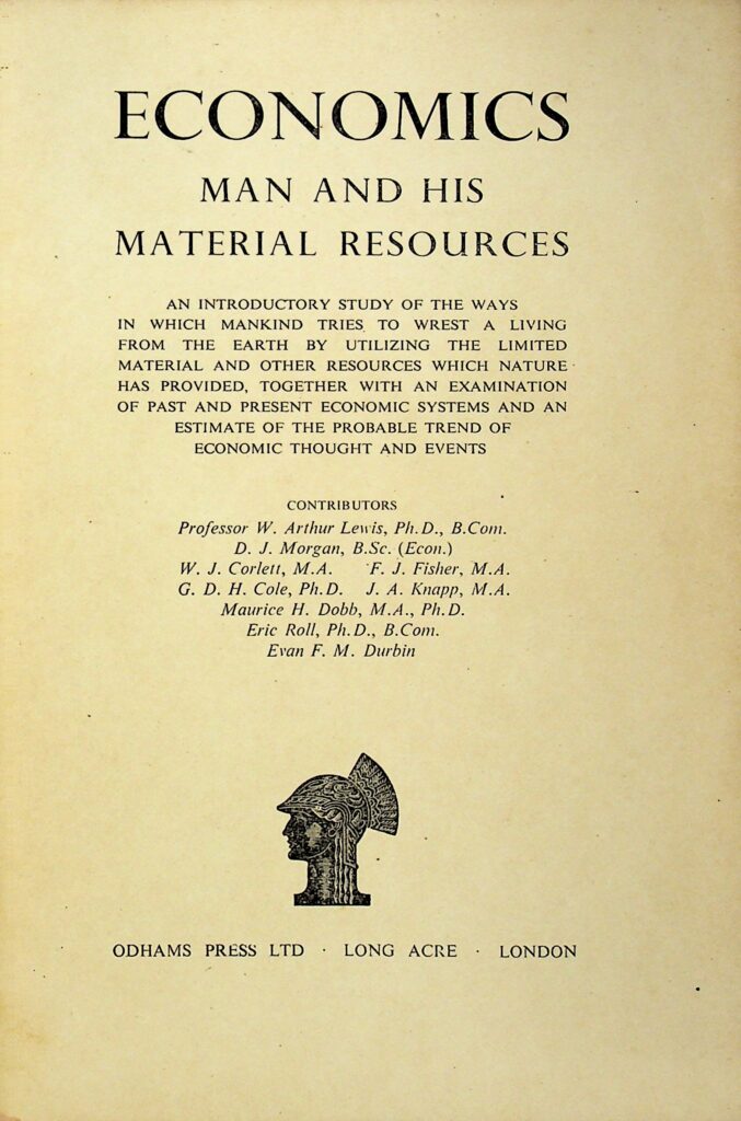 《经济学:人与其物质资源》对经济学进行了入门研究。文章考察了人类如何利用有限的资源来维持生计,并分析了过去的经济体系和当前的经济趋势。文章探讨了科学进步如何提高生活水平,讨论了贫困、住房和疾病等社会后果,并详细分析了收入和财产分配不均的问题。此外,该书还比较了不同经济体制(如资本主义、交换经济和计划经济)的运作方式,探讨了经济规划的必要性及其在不同国家的实施情况,并深入讨论了经济学理论的发展和现代经济学面临的挑战。