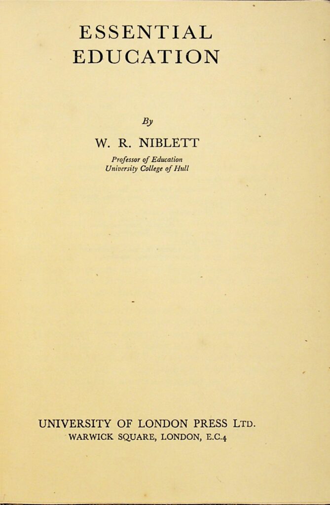 本书《基本教育》(Essential Education)由 W. R. NIBLETT 撰写,他是赫尔大学学院(University College of Hull)的教育学教授。该书是《今日教育问题》(Educational Issues of To-day)系列之一,于 1947 年首次出版。
