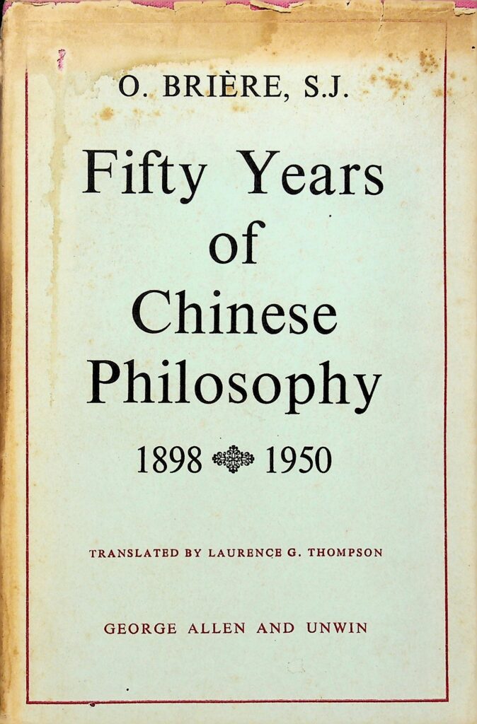 奥古斯特·布里埃尔(O. Briere, S.J.)所著的《中国哲学五十年:1898-1950》的书,这本书由劳伦斯·G·汤普森(Laurence G. Thompson)翻译自法文。