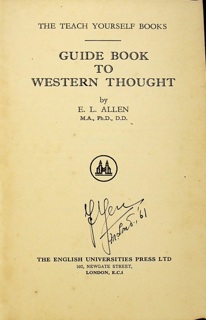 这本《西方思想指南》由 E. L. Allen (M.A., Ph.D., D.D.) 撰写,于 1957 年首次出版。作者的目标是向普通读者介绍西方思想在数个世纪中,为解决人类生活和命运的主要问题所做的持续努力。为了实现这一目标,本书从欧洲发展的主要时期中选出两位杰出人物,阐述他们的思想贡献,并通过衔接环节使叙事保持连贯。本书假定读者对此主题感兴趣,但无需预先知识,并力求避免使用专业术语,集中于核心要义。