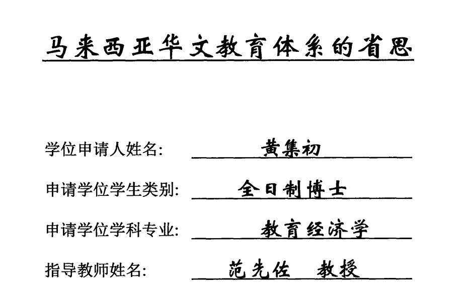 研究目的和意义: 论文旨在以更宏观、客观和持平的视野呈现华教应有的全貌,具体目的包括梳理马来西亚语言教育政策发展历程,客观评价钟灵模式与华校改制,重新审视华小在“最终目标”下面临的抗争与妥协,评议独中办学路线的内部争议,以及重新思考国民型中学的定位。其理论意义在于建立以教育为本位的新论述,超越以往的悲情论述和意识形态倾向。