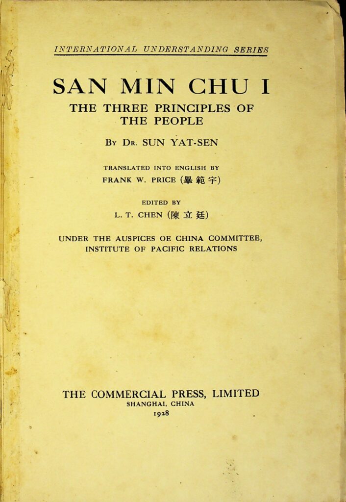 《三民主义》由孙中山博士撰写,毕范宇(Frank W. Price)翻译,陈立廷(L.T. Chen)编辑,于1928年出版。这部著作被列为“国际理解系列”的一部分,旨在增进海外对推动中国前进的伟大力量的理解。