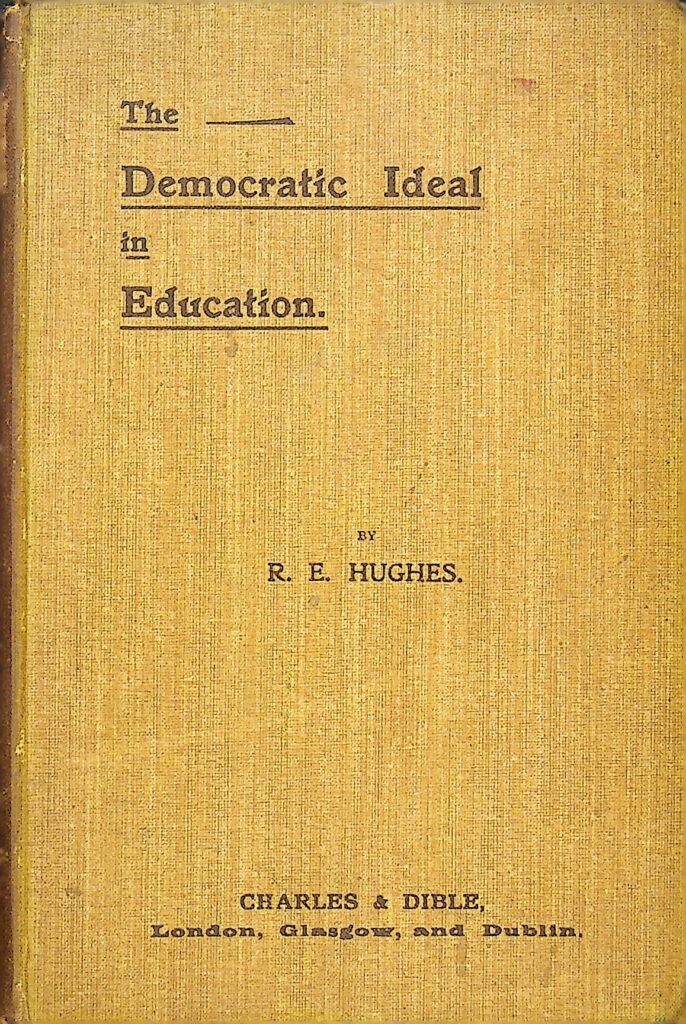 《教育中的民主理想》是一篇对 20 世纪初国际教育系统进行批判性比较的力作。作者 R. E. Hughes 旗帜鲜明地反对欧洲大陆,特别是德国的中央集权、官僚主义和目标明确的(ad hoc)教育模式,他认为这种模式虽然效率高(Instructional